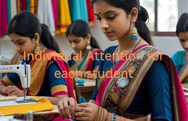 "We offer comprehensive training in Designing, Cutting, Stitching, Tailoring, and Pattern Making. Our curriculum covers Body Measurements and the creation of various garments including Blouses, Dresses, Kurtis, Churidars, Lehenga Cholis, Palazzos, Patialas, Kids Wear, and Western Wear.