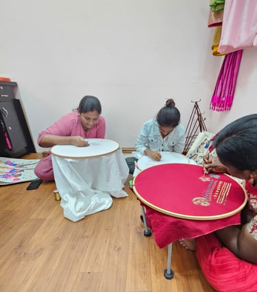 Join our expert-led program designed to take you from basics to brilliance in circular hoop designs. Learn intricate techniques, creative patterns, and professional finishing – all under the guidance of certified embroidery artists.